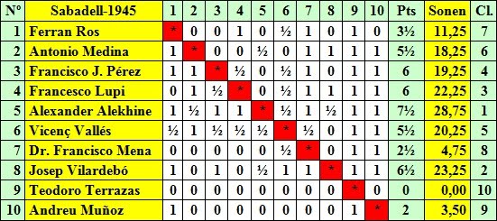 IV Torneo Internacional de Ajedrez de Sabadell 1945, victoria de Alexander Alekhine