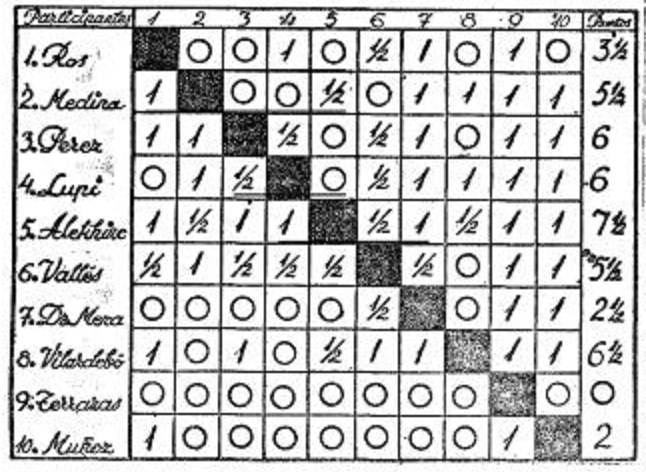 Y aquí Alekhine, como queriendo justificarse ante el público dijo.»Si, es un empate». Y Vallés, que no supo qué decir, confesó haber sentido vergüenza.