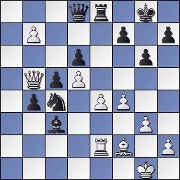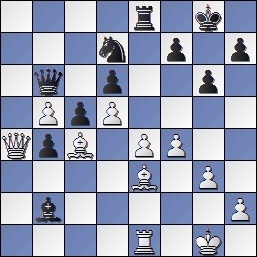 [12.Af4 quizás más activa.]12…b5 13.a3 Db6 14.Dc2 a5 15.a4 b4 16.Cb5 Aa6