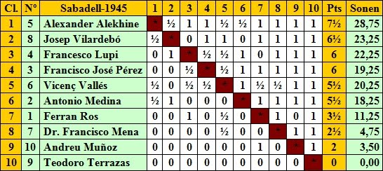 IV Torneo Internacional de Ajedrez de Sabadell 1945, victoria de Alexander Alekhine